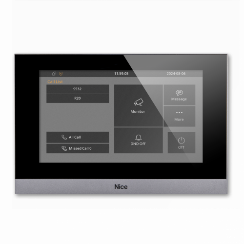The MyBell 2-Wire Indoor Monitor is an innovative solution for audio and video communication in residential and commercial environments. Equipped with a Linux operating system, it offers a superior user experience with its 7-inch capacitive toucscreen, ensuring clear and sharp visuals.
